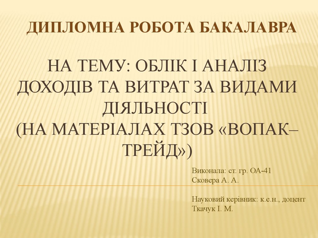 1. На тему: Облік і аналіз доходів та витрат за видами діяльності (на матеріалах ТзОВ «Вопак–Трейд»)