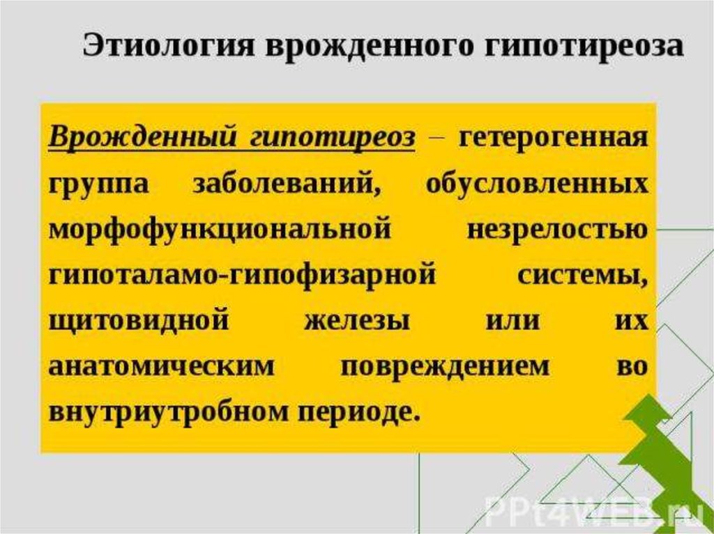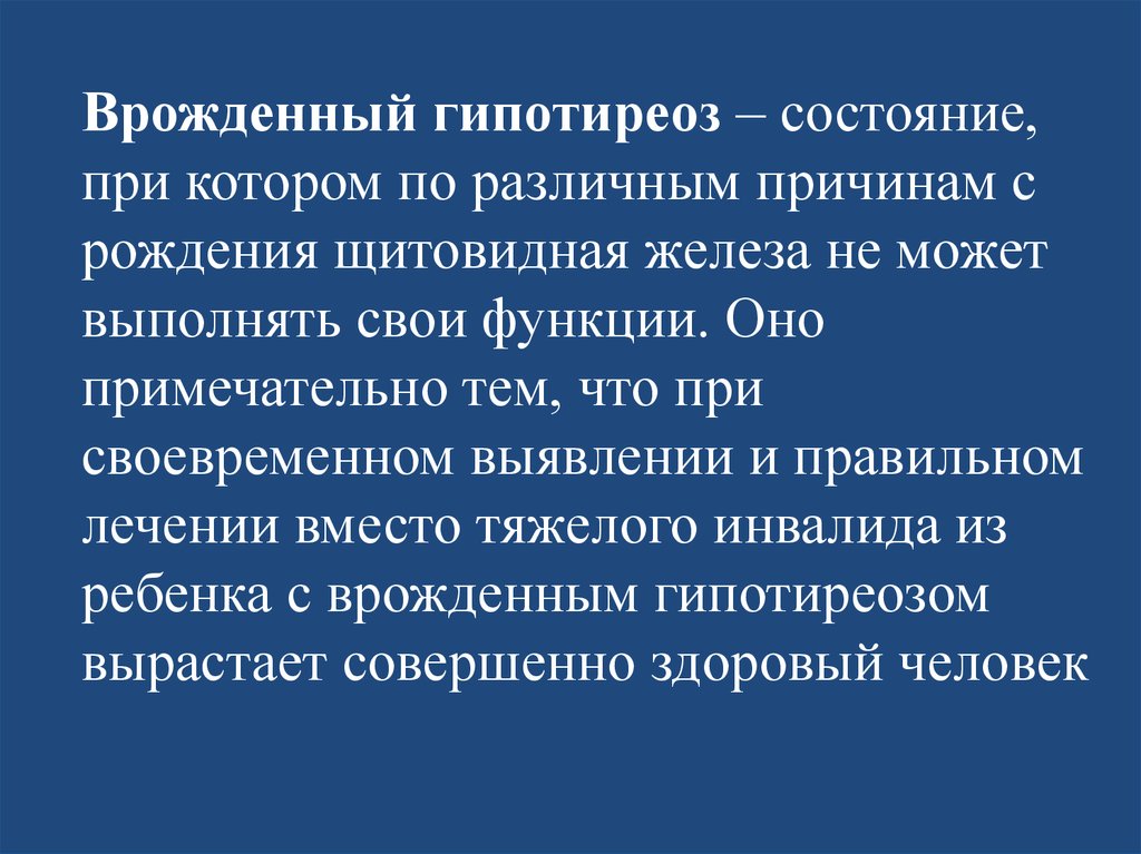 Врожденный гипотиреоз – состояние,при котором по различным причинам с