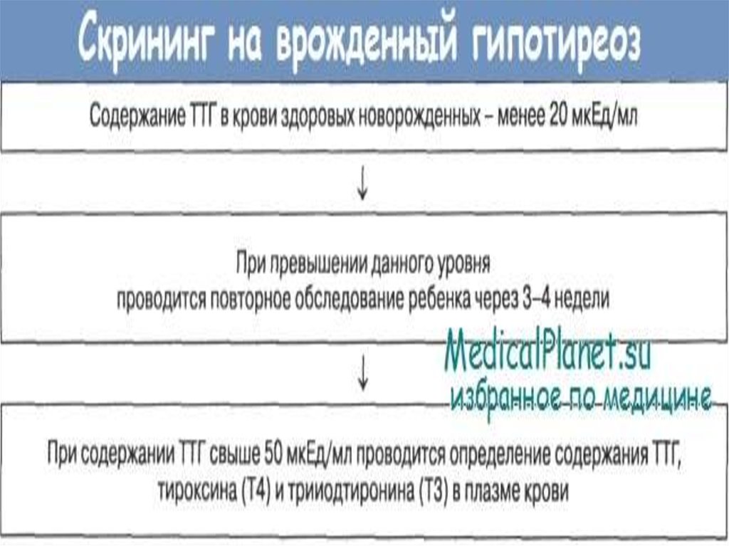В России при скрининге определяют ТТГ, дляокончательной постановки диагноза – гормоны