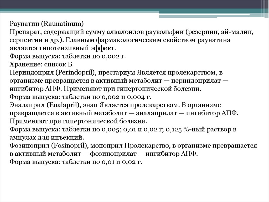 Раунатин (Raunatinum)Препарат, содержащий сумму алкалоидов раувольфии (резерпин, ай-малин,