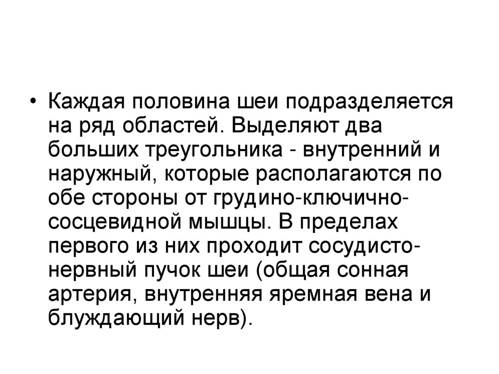 • Каждая половина шеи подразделяетсяна ряд областей. Выделяют два