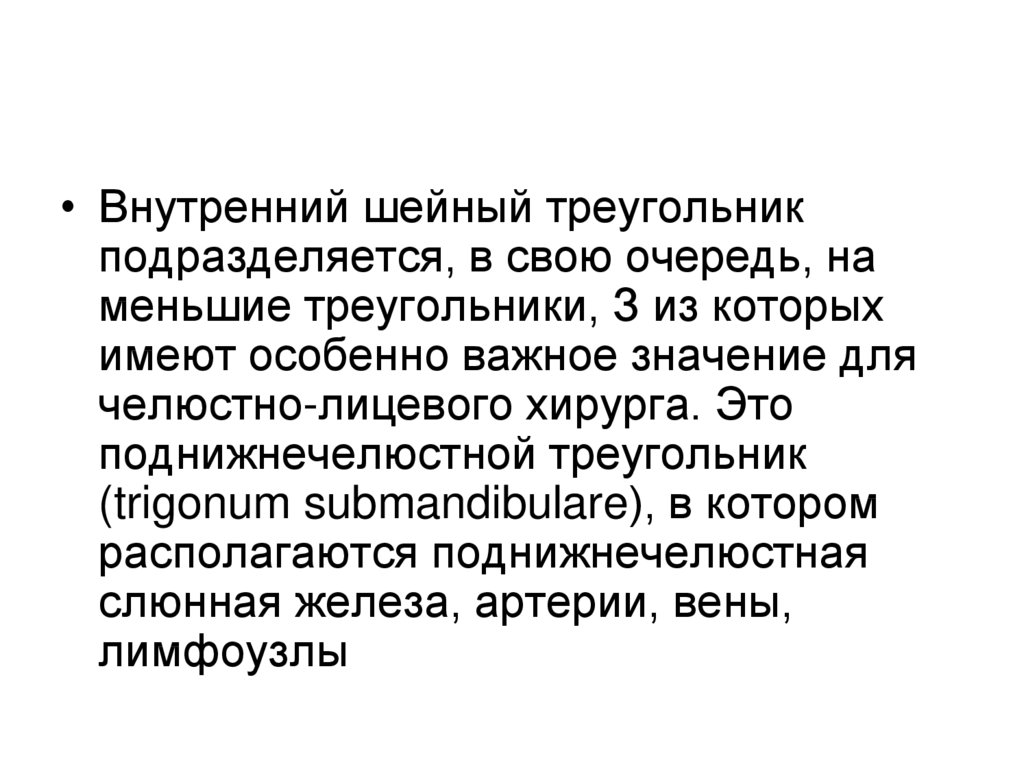 • Внутренний шейный треугольникподразделяется, в свою очередь, на
