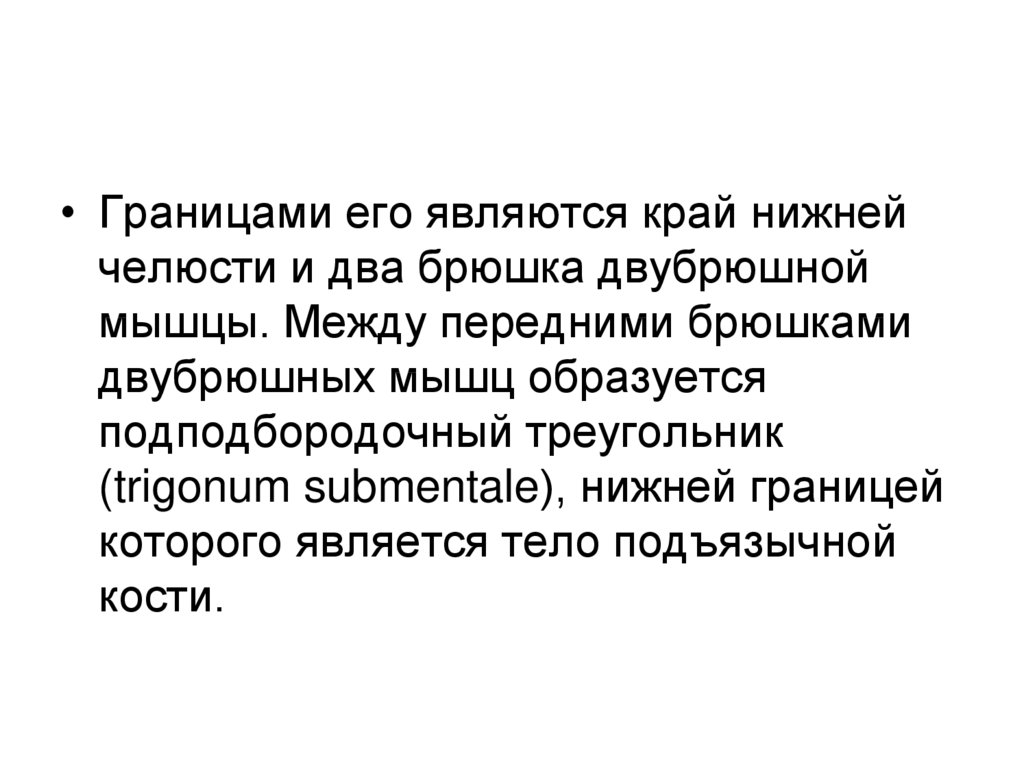 • Границами его являются край нижнейчелюсти и два брюшка двубрюшной