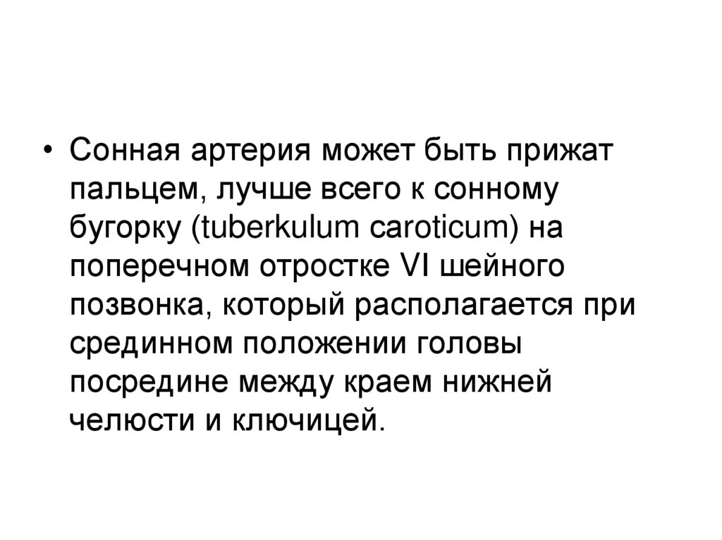 • Сонная артерия может быть прижатпальцем, лучше всего к сонному
