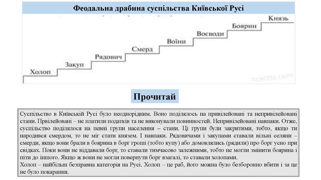 Суспільство в Київській Русі було неоднорідним. Воно поділялось на привілейовані та непривілейовані