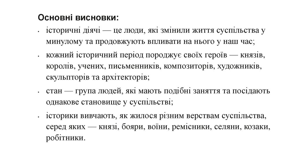 Основні висновки:історичні діячі — це люди, які змінили життя суспільства у