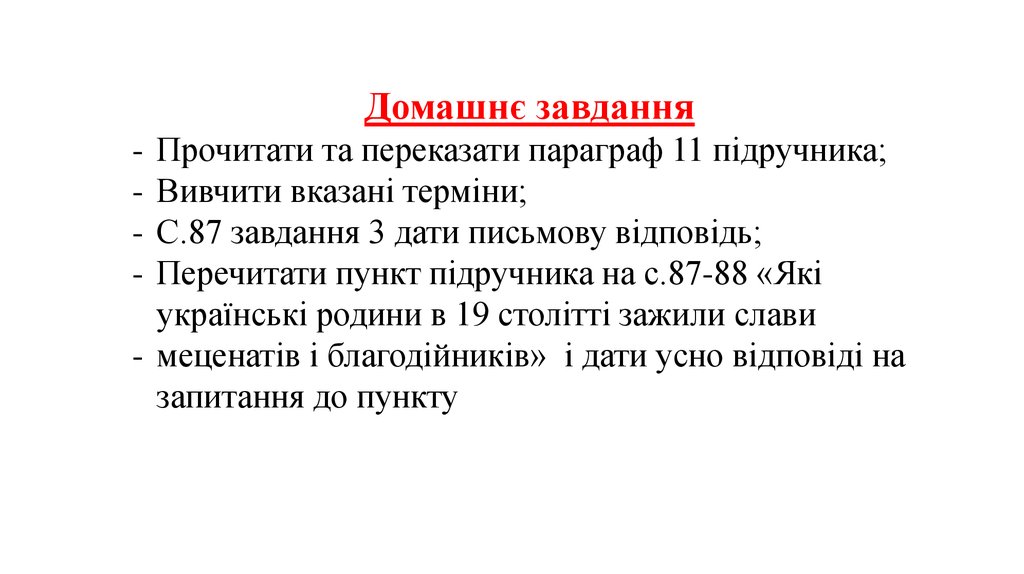Домашнє завданняПрочитати та переказати параграф 11 підручника;