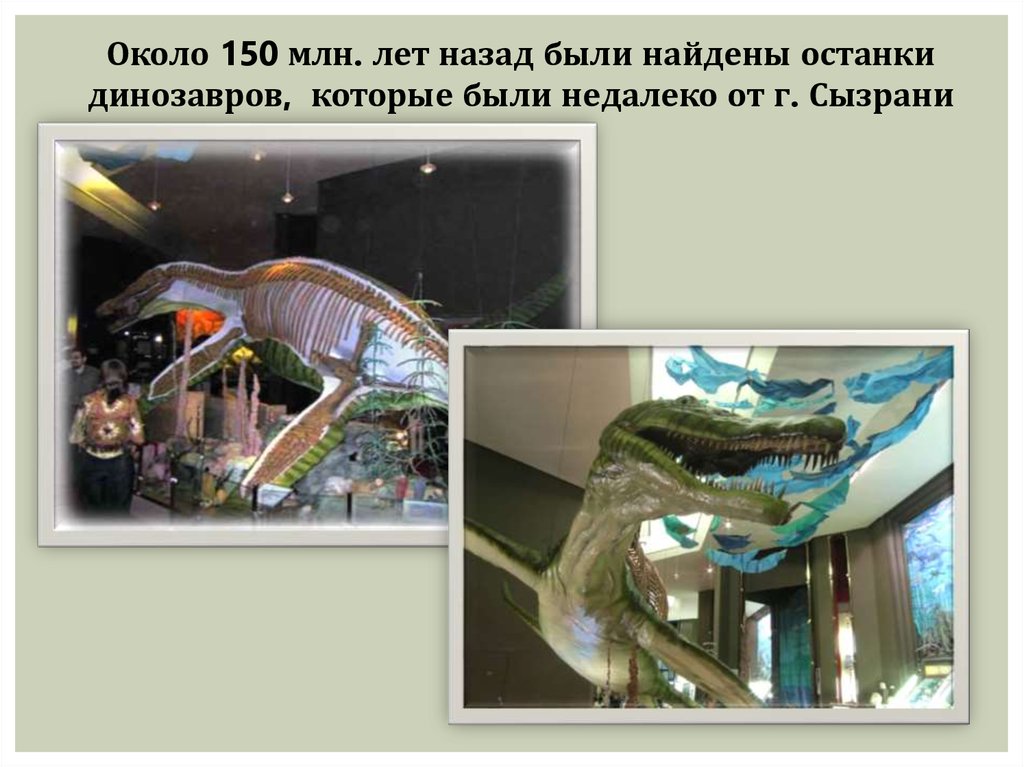 Около 150 млн. лет назад были найдены останкидинозавров, которые были недалеко от г. Сызрани
