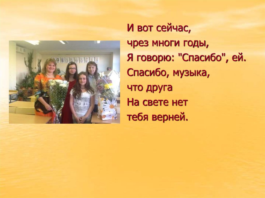 Спасибо, музыка, за то,Что ты единственное чудо,