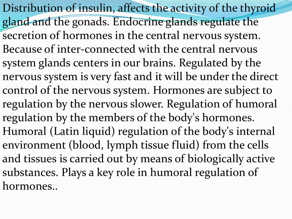 Distribution of insulin, affects the activity of the thyroidgland and the gonads. Endocrine glands regulate the