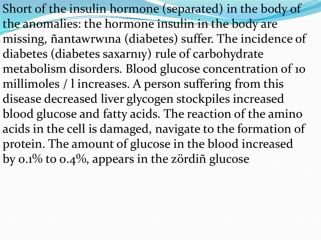 Short of the insulin hormone (separated) in the body ofthe anomalies: the hormone insulin in the body are