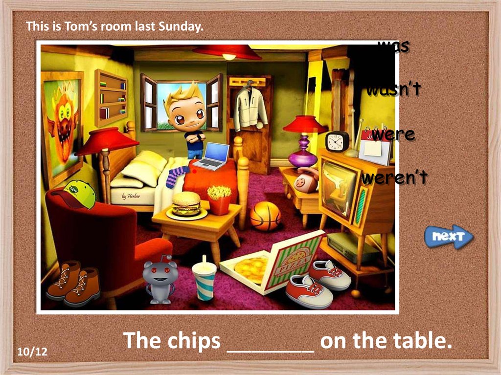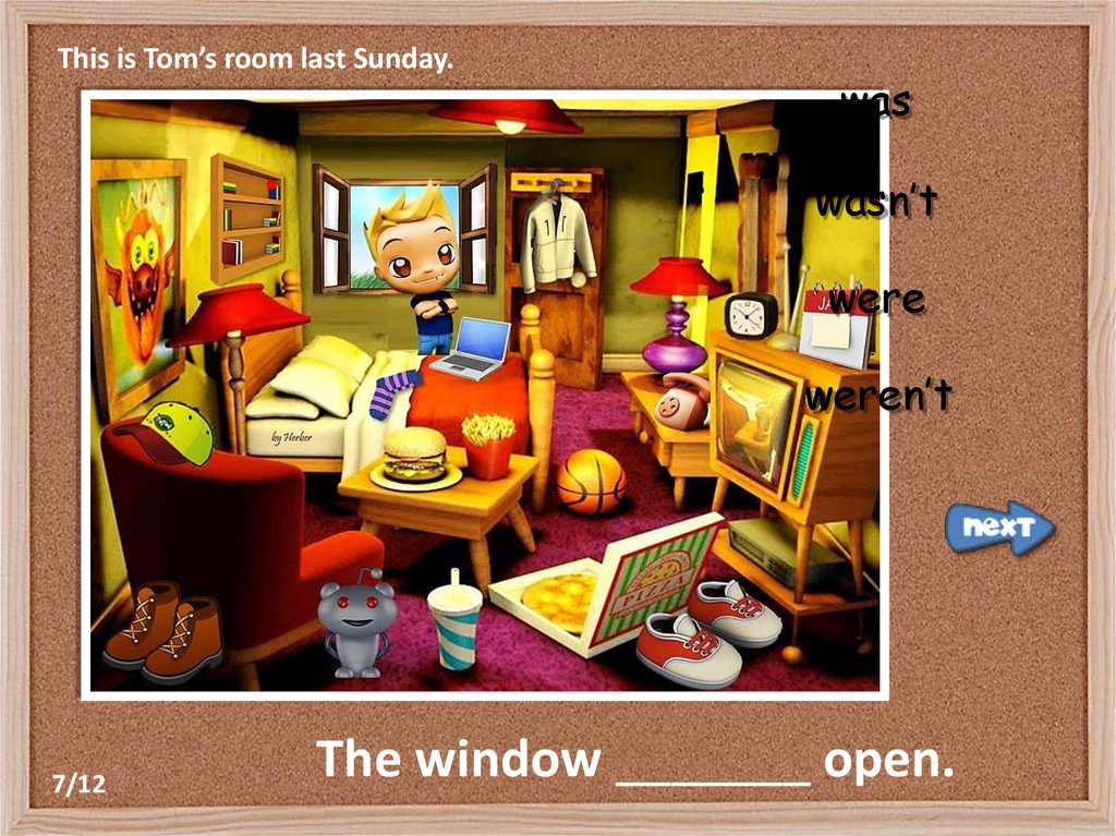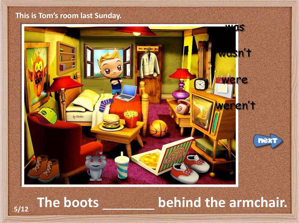 This is Tom’s room last Sunday.was