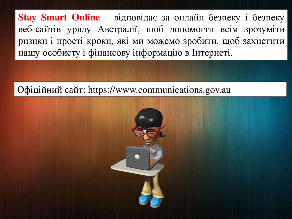 Stay Smart Online – відповідає за онлайн безпеку і безпекувеб-сайтів уряду Австралії, щоб допомогти всім зрозуміти