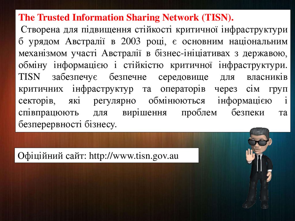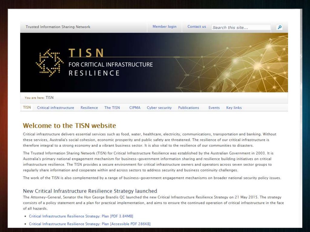 The Trusted Information Sharing Network (TISN).Створена для підвищення стійкості критичної інфраструктури