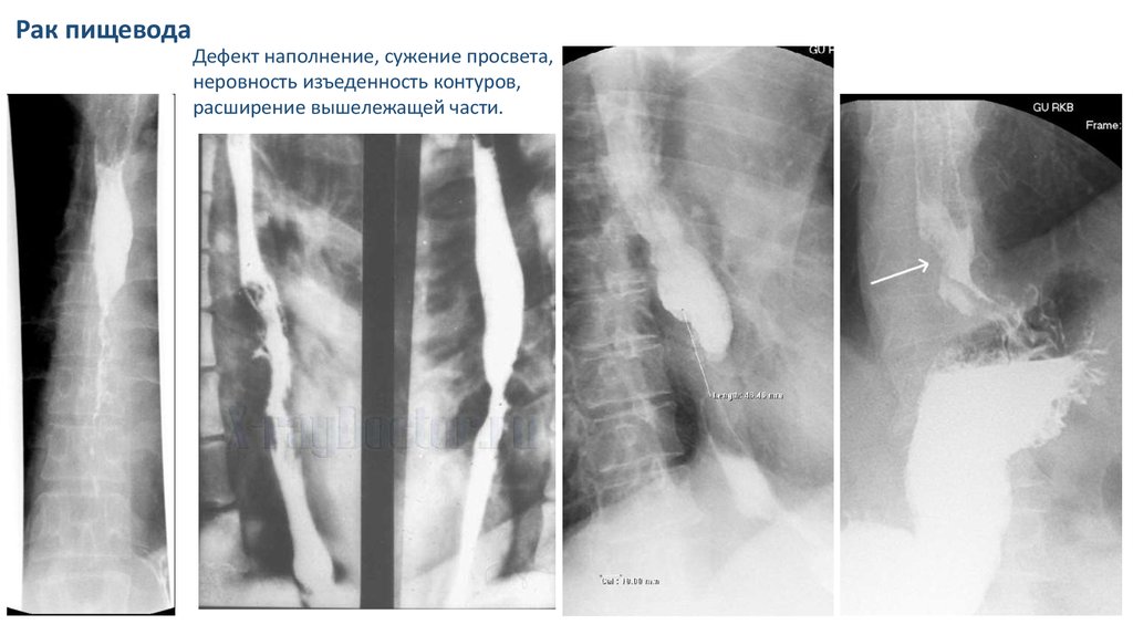 Рак пищеводаДефект наполнение, сужение просвета,