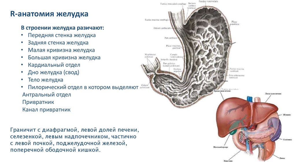 R-анатомия желудкаВ строении желудка разичают:
