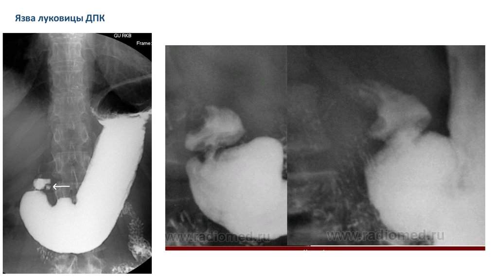 расположенной между ДПК и привратниковой частью желудка, складки радиарно сходятся к привратнику.