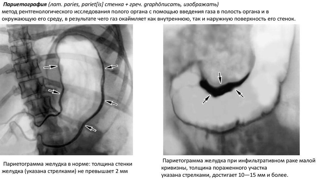 Париетография (лат. paries, pariet[is] стенка + греч. graphōписать, изображать)метод рентгенологического исследования полого органа с помощью введения газа в полость органа и в