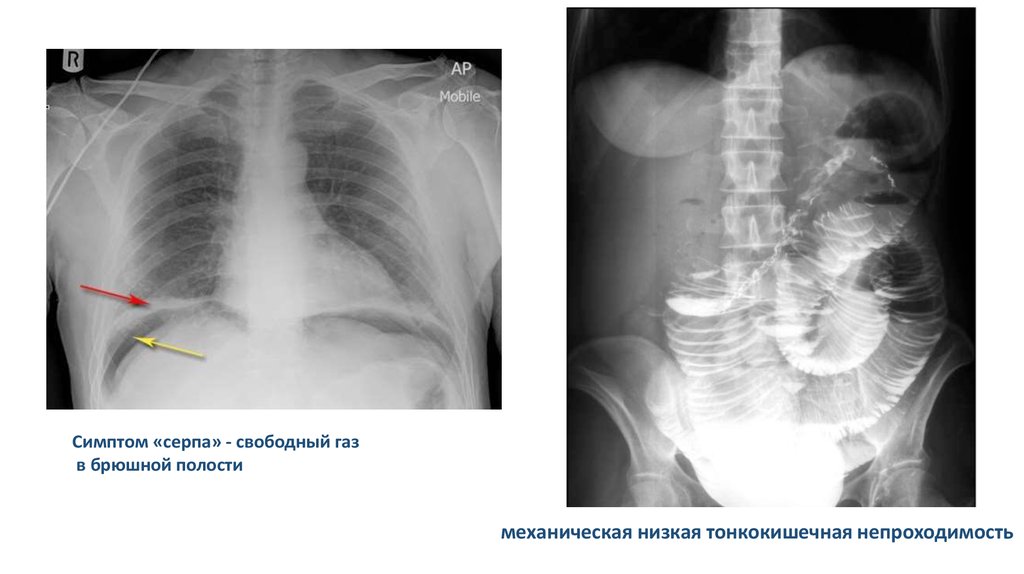 Симптом «серпа» - свободный газв брюшной полости