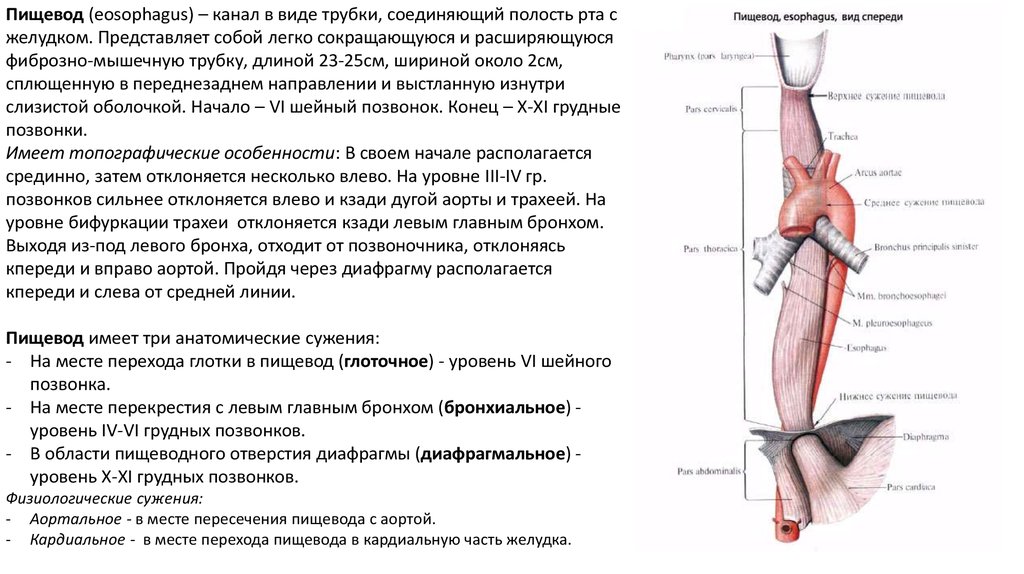 слизистой оболочкой. Начало – VI шейный позвонок. Конец – X-XI грудные