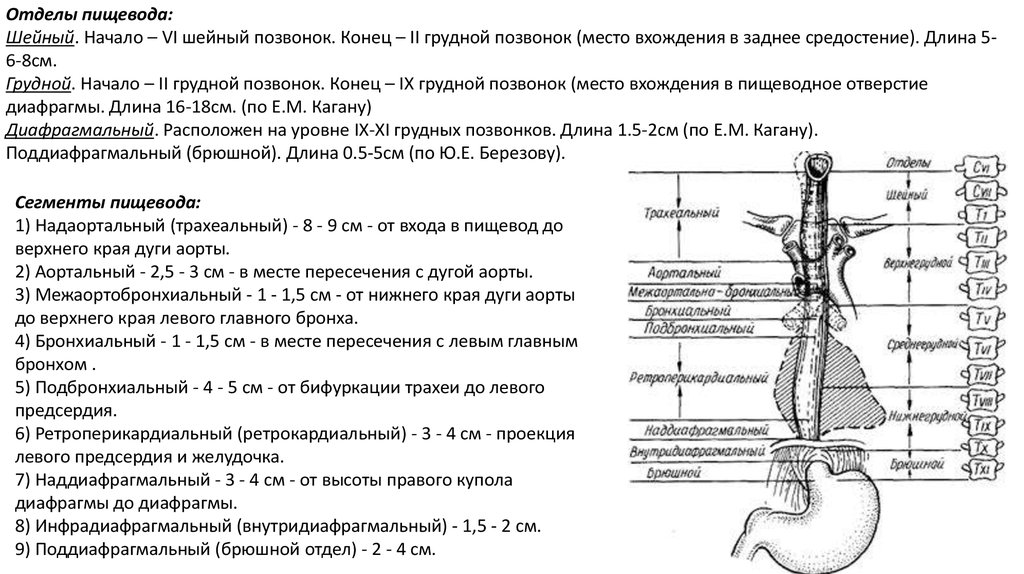 Сегменты пищевода: