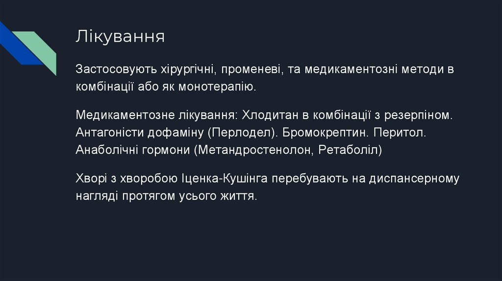 Медикаментозне лікування: Хлодитан в комбінації з резерпіном.