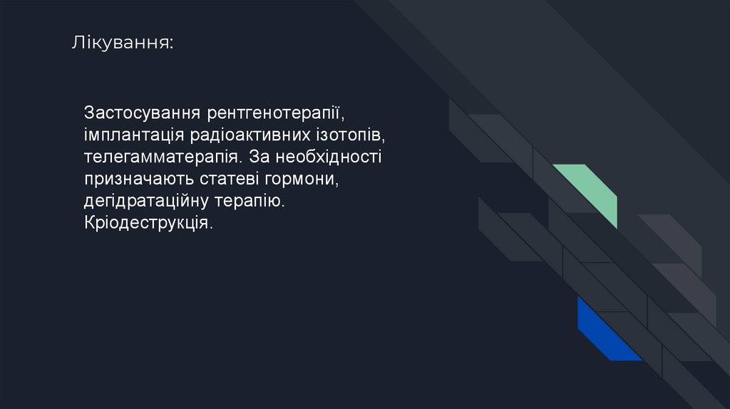 ЛікуванняЗастосовують хірургічні, променеві, та медикаментозні методи в