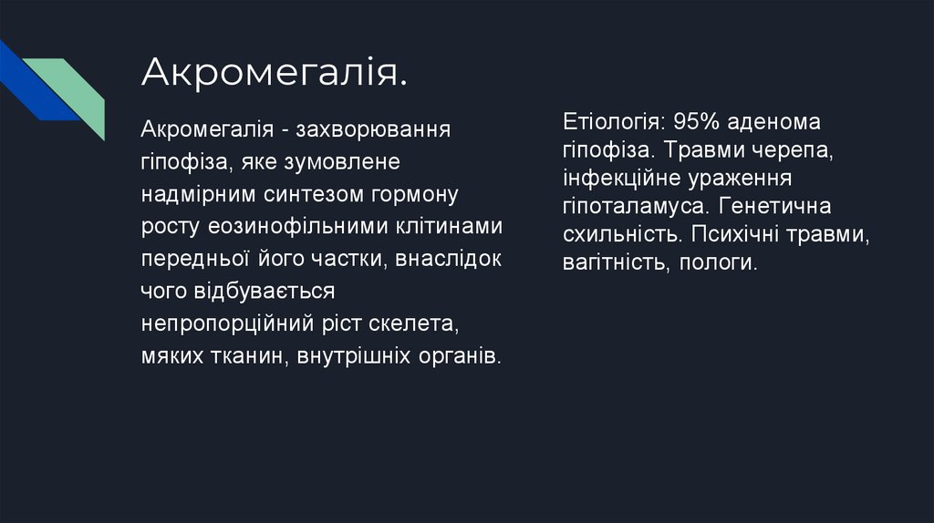 відкриті зони росту. Найчастіша причина ацидофільна аденома