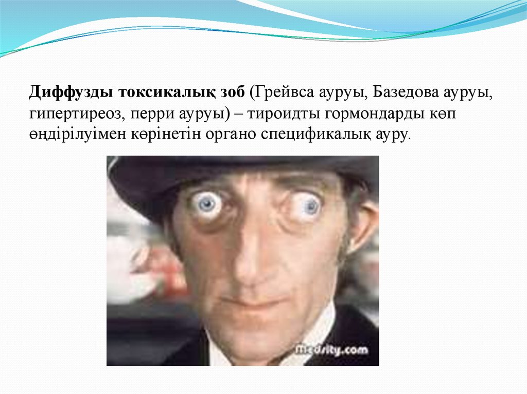 Диффузды токсикалық зоб (Грейвса ауруы, Базедова ауруы,гипертиреоз, перри ауруы) – тироидты гормондарды көп