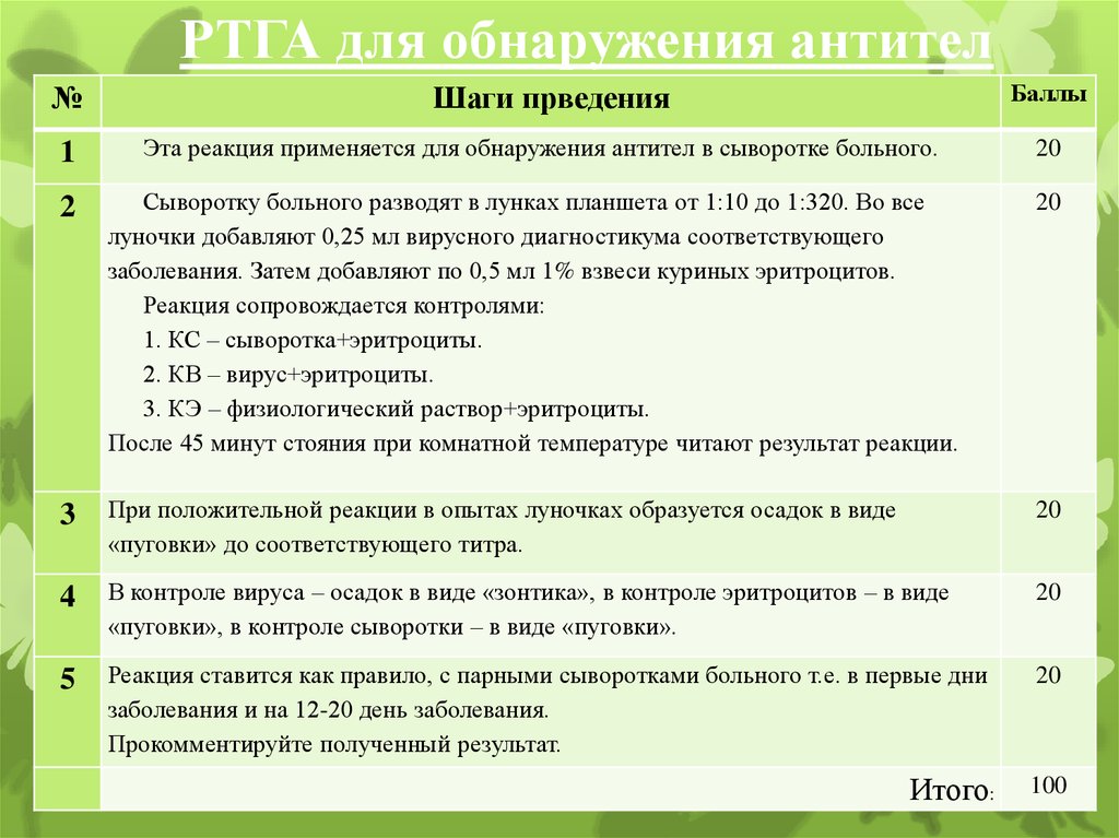 Основана на агглютинации эритроцитов в присутствии вируса,