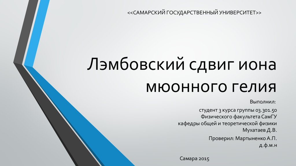 <<САМАРСКИЙ ГОСУДАРСТВЕННЫЙ УНИВЕРСИТЕТ>>Лэмбовский сдвиг иона
