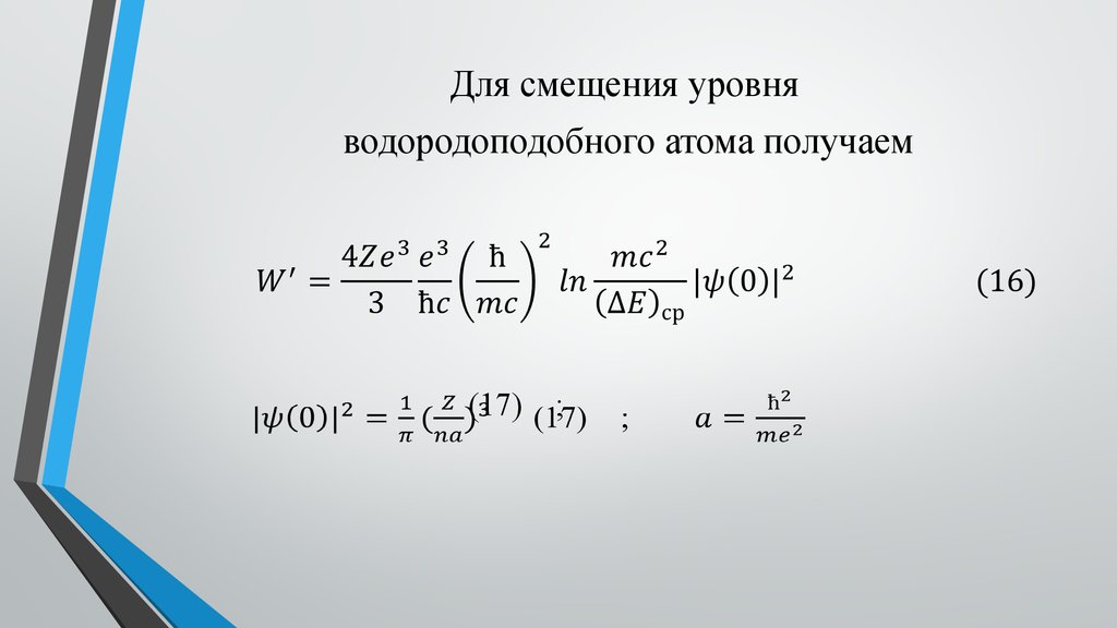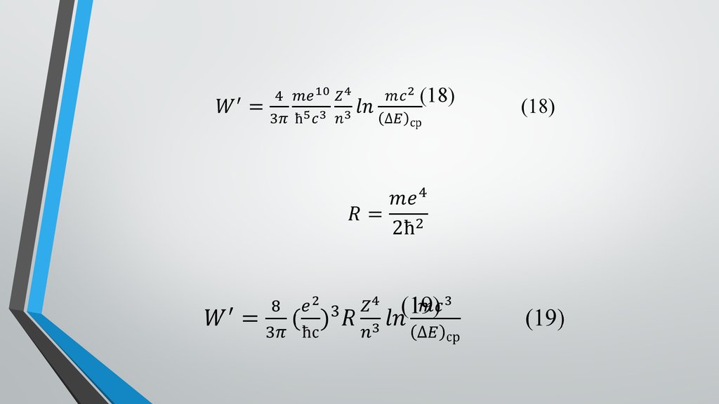 18. W^′=8/3π(e^2/ħс )^3 R Z^4/n^3 ln (mc^3)/(∆E)_ср