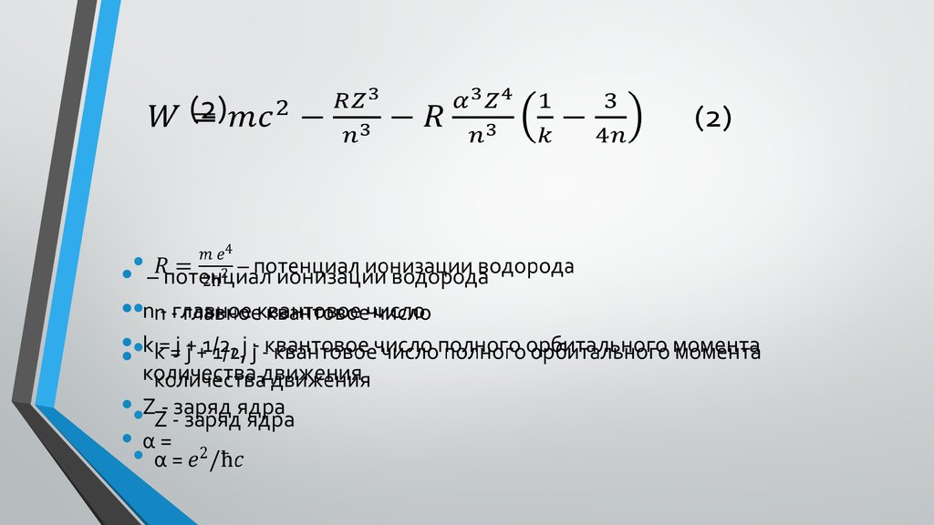 Z=2, n=2, , (R=13.5 эВ), ħ=6.582·10-16 эВ·с, π=3.14, е=1.6·10-19 Кл,