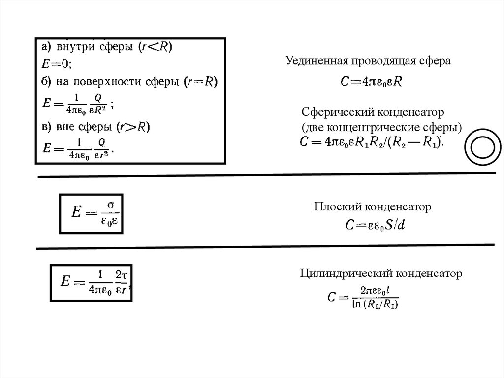 Уединенная проводящая сфераСферический конденсатор