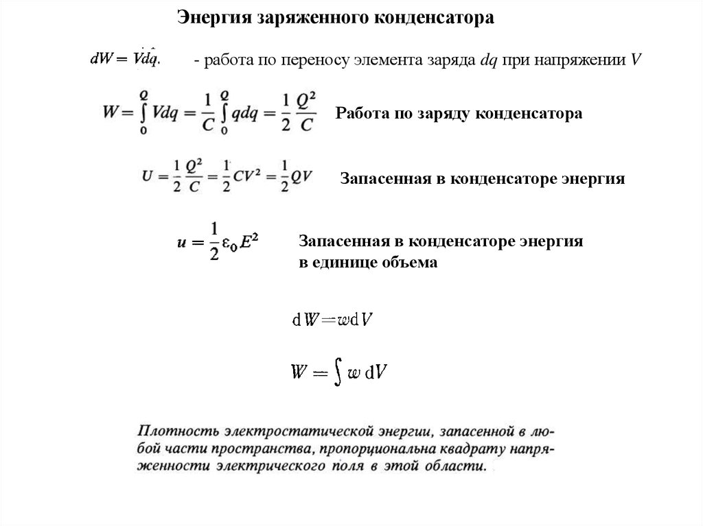 Энергия заряженного конденсатора- работа по переносу элемента заряда dq при напряжении V