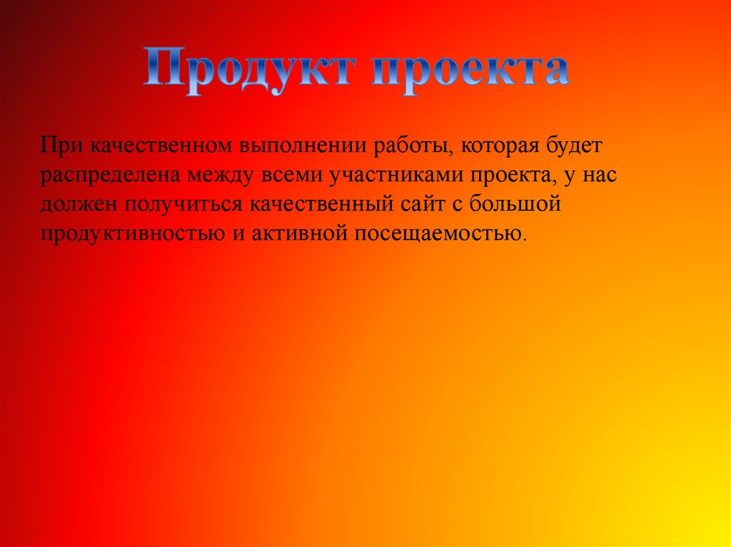 Результатом нашего проекта будет полностьюфункционирующий сайт, на котором людям будет приятно