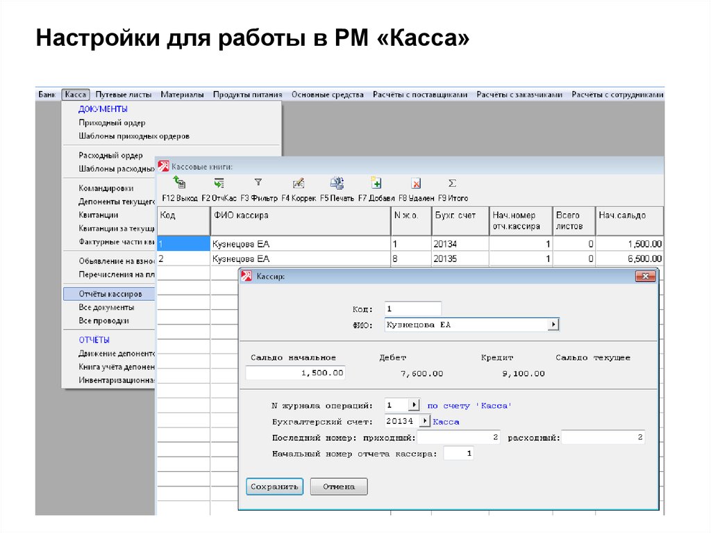 Настройки для работы в РМ «Касса»12.