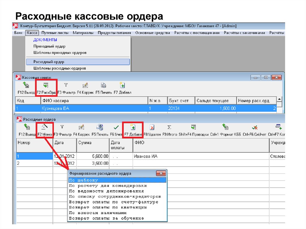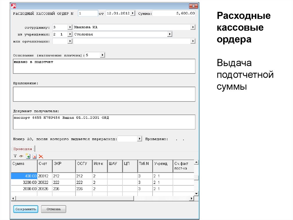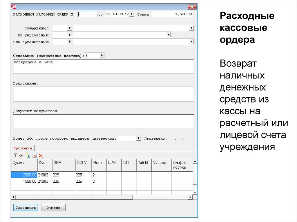 Расходные кассовые ордера18.