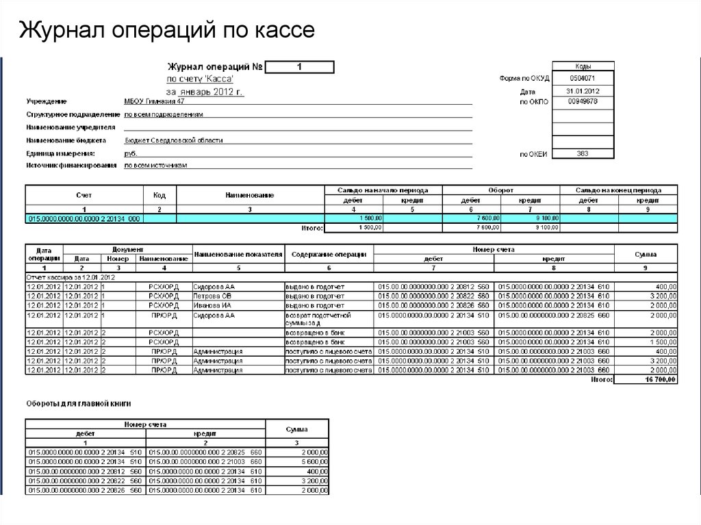 Журнал операций по кассе28.