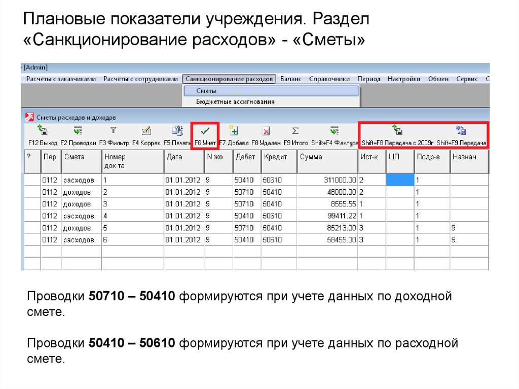 Проводки 50710 – 50410 формируются при учете данных по доходной