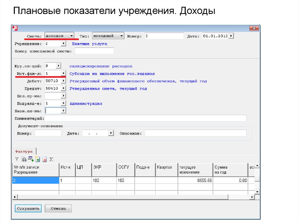 Плановые показатели учреждения. Доходы33.