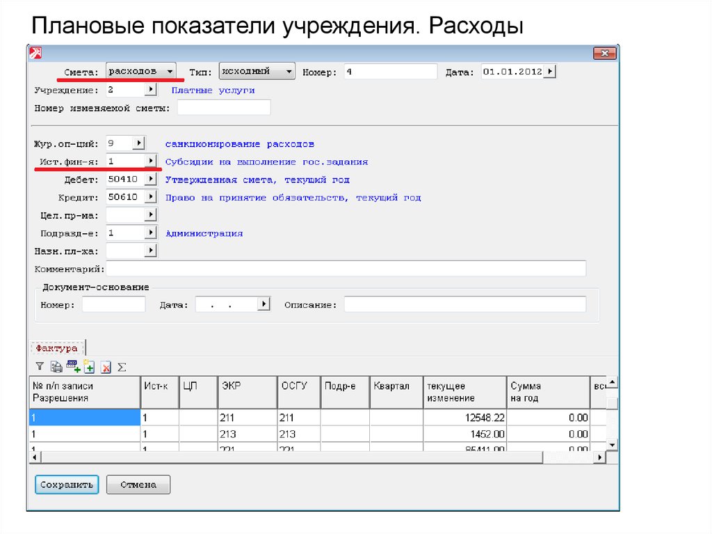 Плановые показатели учреждения. Раздел«Санкционирование расходов» - «Сметы»