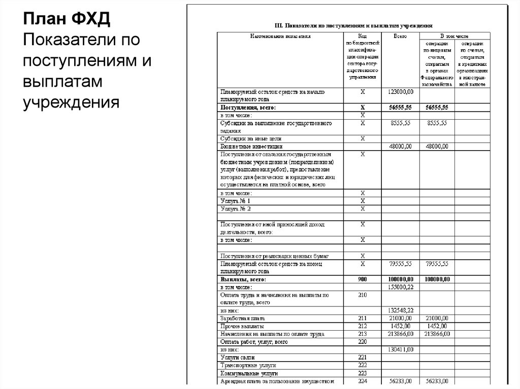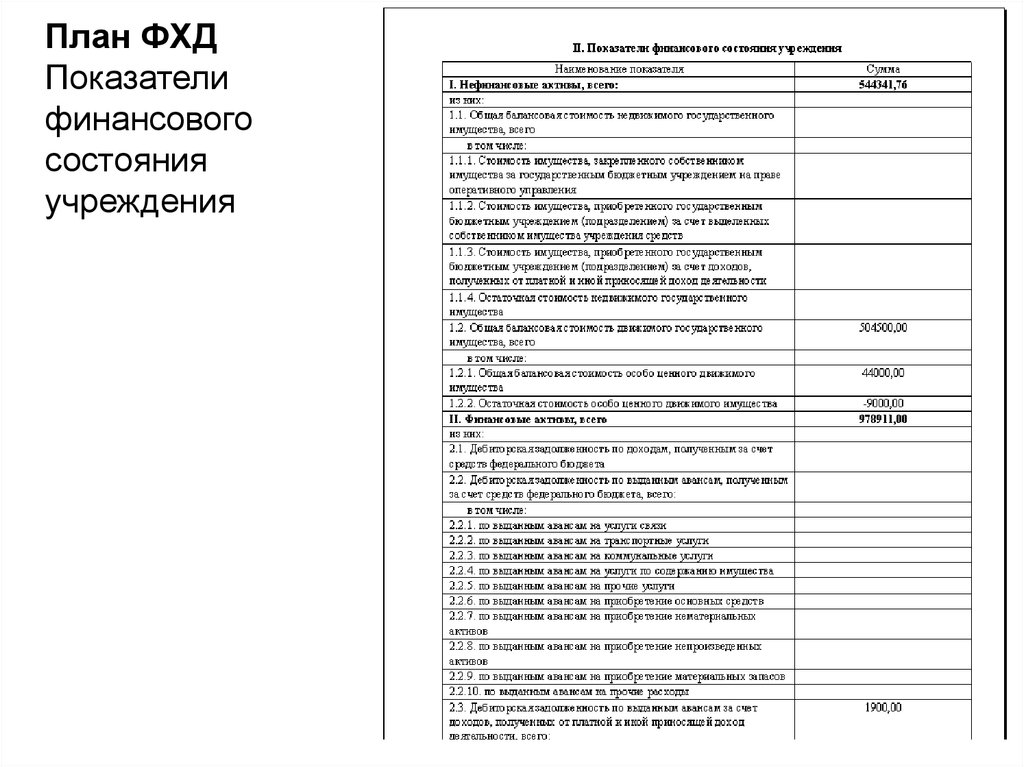План ФХДПоказатели