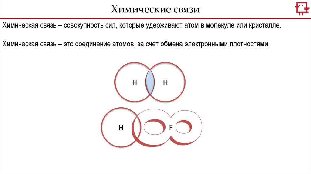 Химическая связь – это соединение атомов, за счет обмена электронными плотностями.