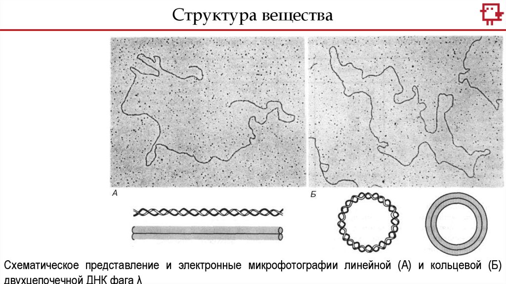 Структура веществаСхематическое представление и электронные микрофотографии линейной (А) и кольцевой (Б)