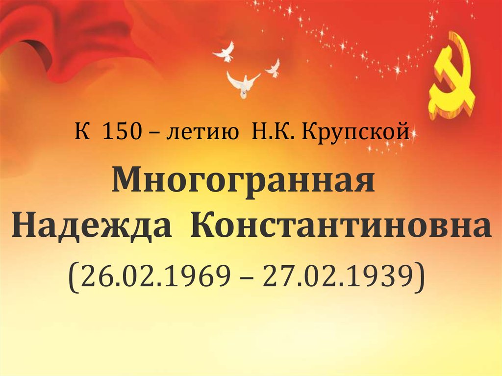 К 150 – летию Н. К. Крупской. Многогранная Надежда Константиновна