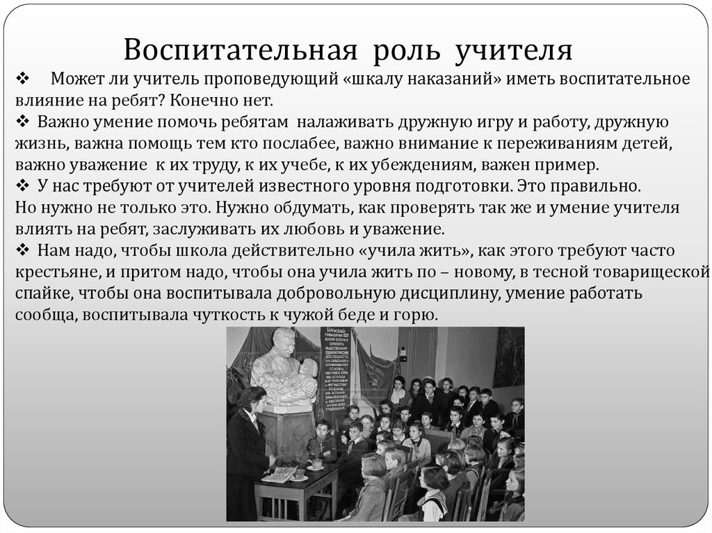 Воспитательная роль учителяМожет ли учитель проповедующий «шкалу наказаний» иметь воспитательное