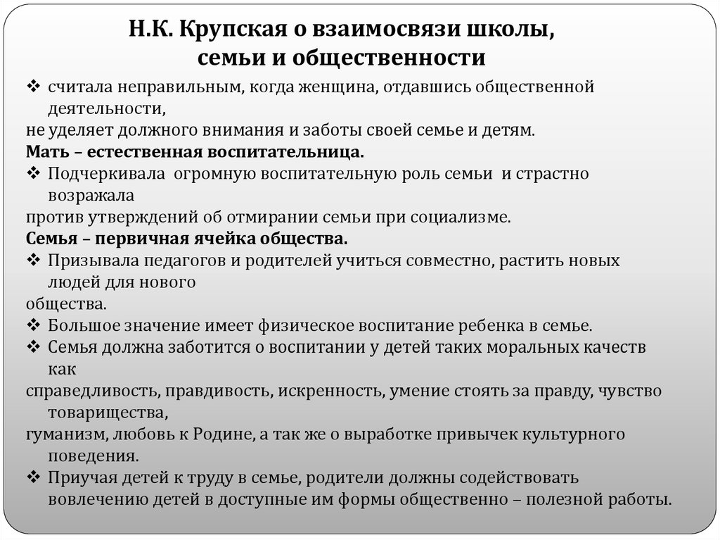 Н.К. Крупская о взаимосвязи школы,семьи и общественности