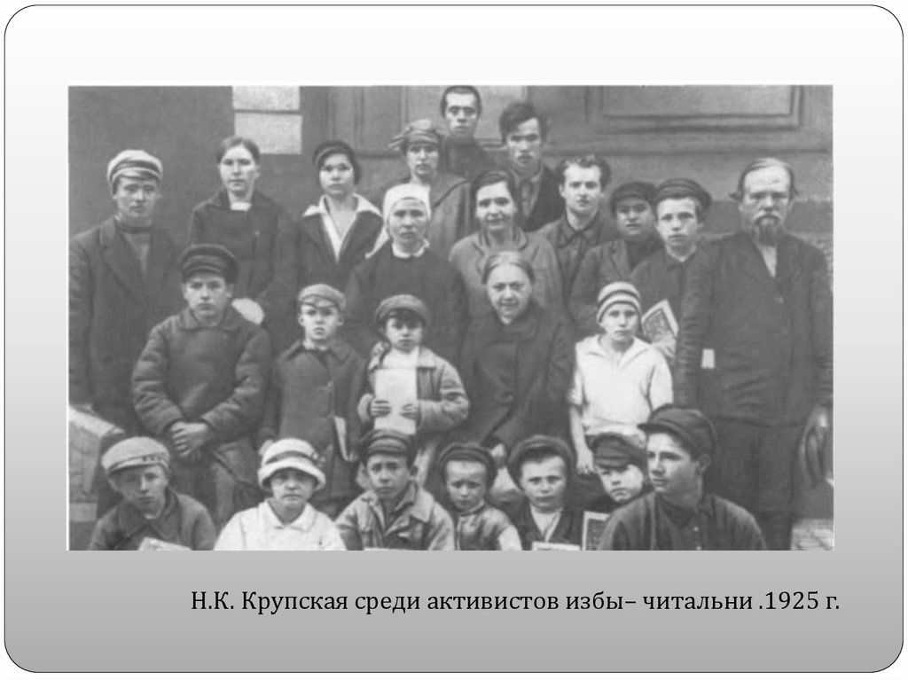 Н.К. Крупская среди активистов избы– читальни .1925 г.26.