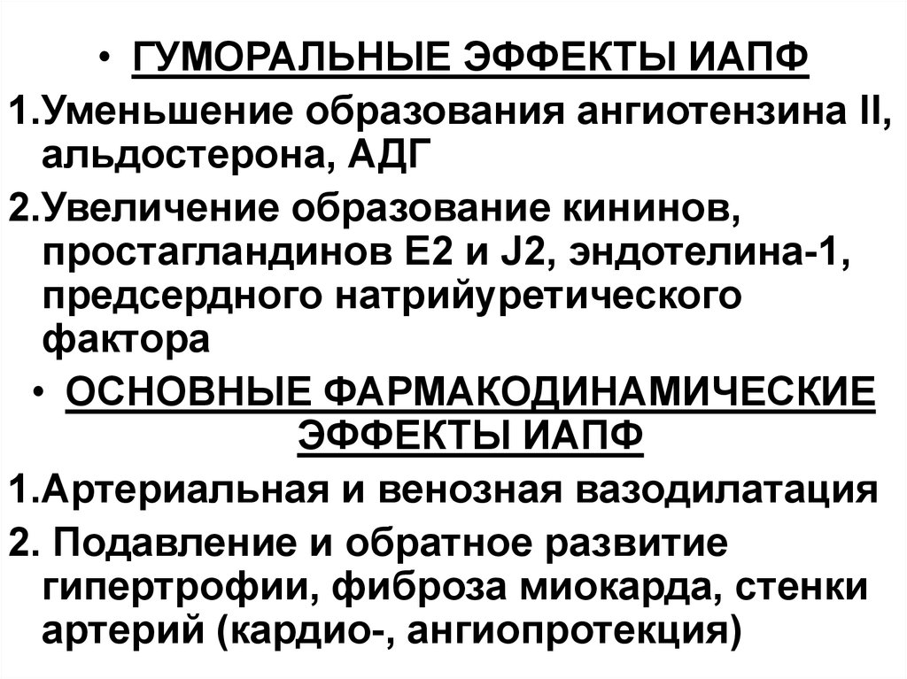 • ГУМОРАЛЬНЫЕ ЭФФЕКТЫ ИАПФ1.Уменьшение образования ангиотензина II,